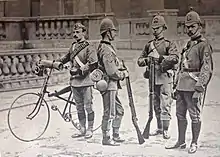 The regiment was founded on the formation of the Volunteer Force, raised by the Duke of Westminster and named in honour of Queen Victoria in 1860.[1] Initially it was known as the Pimlico Rifle Volunteer Corps. A year later it amalgamated with the Westminster Rifle Volunteers and became known as the Queen's Westminsters.[2]
