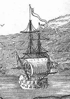 Queen Anne's Revenge was an early-18th-century ship, most famously used as a flagship by Edward Teach, better known by his nickname Blackbeard. Although the date and place of the ship's construction are uncertain,[3] it was originally believed she was built for merchant service in Bristol, England in 1710 and named Concord,[4] later captured by French privateers and renamed La Concorde. After several years' service by French sailors (both as a naval frigate and as a merchant vessel – much of the time as a slave trading ship), she was captured by Blackbeard in 1717. Blackbeard used the ship for less than a year,[5] but captured numerous prizes using her as his flagship.