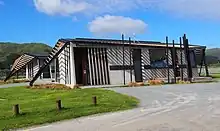 Plans for the development of the park facilities at the Mackays Crossing entrance were announced in 2012.[12] A visitor centre named Ramaroa was opened in 2017.[13] The complex includes a meeting room with capacity for 60 people, a park ranger office and public toilets. The design of the Ramaroa Centre is unusual and includes a gullwing roof. The architecture takes inspiration from the history of the site, including Māori wharenui and the forms of the tents and huts used in the US Marines camp.[14]