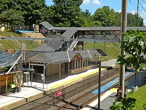 The station is 7.4 track miles from Suburban Station. In 2004, this station saw 470 boardings on an average weekday. It was built for the Philadelphia, Germantown & Chestnut Hill Railroad, a subsidiary of the Pennsylvania Railroad, in 1885 to a design by Washington Bleddyn Powell.[3]
