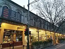 In 1930, sixty brick stores were built at the Franklin Street end[16] to house wholesale agents and merchants. However, this was short-lived due allegations of corruption and racketeering, and the findings of a Royal Commission led to the relocation of the Wholesale Market to Footscray in 1969. All that remains today of these stores is a row of shopfronts along Franklin Street.[2]