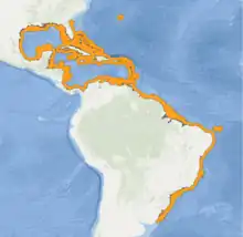 | Range of the queen angelfish | |