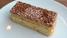A vanilla and custard cream cake dessert popular in several central-European countries. There are many regional variations, but they all include puff pastry base and custard cream.