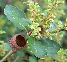 This oak often produces a stable hybrid with Quercus lobata, that has been named Quercus × macdonaldii.[3]