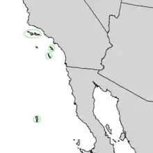 It is native to six islands: five of the Channel Islands of California (Anacapa Island, San Clemente Island, Santa Catalina Island, Santa Cruz Island, and Santa Rosa Island) and Guadalupe Island, part of the State of Baja California.[7]