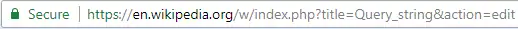 An address bar on Google Chrome showing a URL with the query string title=Query_string&action=edit[4]