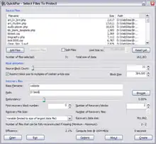 QuickPar is a computer program that creates parchives used as verification and recovery information for a file or group of files, and uses the recovery information, if available, to attempt to reconstruct the originals from the damaged files and the PAR volumes.