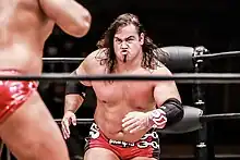 Storm made his first appearance in Pro Wrestling Noah (Noah) on the second night if NOAH One Day Cruise from May 4, 2014, where he participated in a 10-man battle royale competing against Super Crazy, Takeshi Morishima, Zack Sabre Jr. and others.[15] He continued to make sporadic appearances for the promotion such as at NOAH Navigation With Breeze 2014 on May 31, where he unsuccessfully challenged Daisuke Harada for the GHC Junior Heavyweight Championship.[16] Storm marked notable work in the Global Junior Heavyweight Tag League, making his first appearance on the 2014 edition of the event, where he teamed up with Daisuke Harada, placing themselves in the Block B accumulating a total of six points leading the block, but fell short to Cho Kibou-Gun (Hajime Ohara and Kenoh) in the finals.[17] Another notable tournament of the promotion in which Storm took place was the Noah Global League, making his first appearance on the 2014 edition, placing himself in the Block B, scoring a total of two points after going against Takashi Sugiura, Chris Hero, Yuji Nagata, Masato Tanaka, Maybach Taniguchi, Muhammad Yone and Mikey Nicholls.[18] He scored his best performance at the 2016 edition, where he obtained eight points after competing against Minoru Suzuki, Toru Yano, Katsuhiko Nakajima, Lance Archer, Maybach Taniguchi, Akitoshi Saito and Takashi Iizuka.[19] He also activated in the 2017 edition where he faced other new foes such as Kazma Sakamoto finishing with six points,[20] and in 2018 edition, where he scored another six points and newly faced Masa Kitamiya and Mitsuya Nagai.[21]