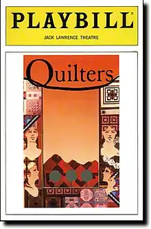 The Washington Post reviewer wrote: "Quilters should probably be billed as a 'play with music,' lest you go expecting a big musical number to lift the proceedings a peg or two. Nothing is really big in this production. Its greatest strength is its unassuming honesty. It creates moods, more than it does drama, and its best moods are straightforward, like the people it is celebrating...The script is divided loosely into 16 sections or 'blocks,' dealing with such themes as childbirth, school days, windmills, courtship, weddings, country roads, religion and even log cabins. At the start of each section, one of the actresses unfolds a piece of quilting, which incorporates that particular concern into its design. Handsome and tidy pieces of work, they combine at the end to make one huge quilt, which is raised high, the flag of pioneer womanhood. It is a transcendent finale."[4]