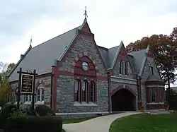 The society occupies the former Adams Academy building. The building was designed by Henry Van Brunt and William Robert Ware, the latter of whom was the architect of the Episcopal Divinity School in Cambridge, Massachusetts, built in 1869, has been listed on the National Register of Historic Places since 1974,[1] and was designated a National Historic Landmark in 1994.[2][3]