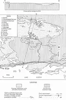 The Quirke, Denison, Spanish-American, Can-Met, and Stanrock uranium mines were located in close proximity to the edge of the lake's shore.[1] Historically, mine water was discharged into Quirke Lake from the mines.[4]
