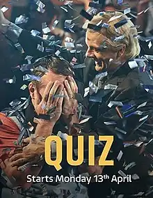 Quiz is a British drama television serial by James Graham, based on Graham's play of the same name[2] commissioned by William Village[3] and the book Bad Show: the Quiz, the Cough, the Millionaire Major by Bob Woffinden and James Plaskett.[4] It is directed by Stephen Frears[5][6][7][8] and consists of three hour-long episodes.[9] The series focuses on Charles Ingram, a former army major in the Royal Engineers, and how he unexpectedly won the £1,000,000 jackpot on the quiz show Who Wants to Be a Millionaire? in 2001, followed by a criminal trial in which he and his wife were convicted of cheating their way to success.[10]