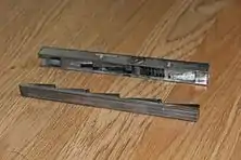 A quoin is a device used to lock printing type in a chase in letterpress printing.[1] Quoins are pairs of wedges, facing opposite directions. A wrench or quoin key forces them together.[2]