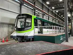 Built at Alstom's Sri City plant in India, the trains were delivered to Montreal by boat, arriving in October 2020.[38] They were first unveiled by the in November 2020.[39][40] By November 2021, 37 of the 106 trains had been delivered and trains were undergoing testing.[41]
