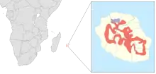 The species is restricted to the forest canopy, with a distribution limited to two small patches of Réunion's native subtropical mountain forests in the north of the island. Although it once ranged across Réunion in suitable habitat, its stronghold is the Plaine des Chicots – Plaine d'Affouches Important Bird Area near the island capital of Saint-Denis.[2] Its diet is principally insects, though fruit are also taken.[3]