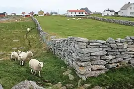 The village of Røstlandet is a fishing village that covers the southeastern part of the island. Røst Airport is located on the northern part of the island. Røst Church is located in the village. The remaining uninhabited parts of the island are dominated by sheep farming and racks for drying fish.