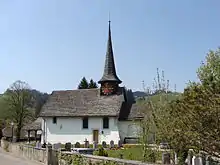 The oldest trace of a settlement is a neolithic artifact discovered in Rüegsau village. The first trace of a modern settlement is in the first half of the 12th century when Rüegsau Abbey was probably founded. While very little is known about the early history of the abbey, it was probably founded by Thüring von Lützelflüh around the same time that he founded Trub Abbey.[3] It is unknown whether the village grew up around the abbey or was already here when the abbey was founded.