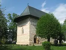 The Războieni Monastery is located in the village of Valea Albă. The monastery's Holy Archangel Michael Church was built by Stephen the Great to commemorate that battle, 20 years later. Dedicated on November 8, 1496, the church rests on a sanctuary holding the remains of the Moldavian soldiers fallen there.[2][3]