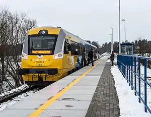 Rębiechowo railway station is a railway station serving the town of Rębiechowo, in the Pomeranian Voivodeship, Poland. The station opened in 1938 and is located on the Nowa Wieś Wielka–Gdynia Port railway and Gdańsk Rębiechowo–Rębiechowo railway. The train services are operated by SKM Tricity.