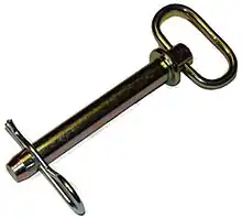 An R-clip, also known as an R-pin, R-key, hairpin cotter pin,[1] hairpin cotter,[2] bridge pin,[2] hitch pin clip[3][4] or spring cotter pin,[5] is a fastener made of a durable but flexible material, commonly hardened metal wire, resembling the shape of the letter "R".