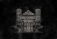 Construction for a water treatment plant began on the site in 1932 and the building became operational on November 1, 1941.[6] The building, unlike most modern engineering structures, was also created to make an architectural statement. Fashioned in the Art Deco style, the cathedral-like structure remains one of Toronto's most admired buildings. It is, however, little known to outsiders. The interiors are just as opulent with marble entryways and vast halls filled with pools of water and filtration equipment. The plant has thus earned the nickname The Palace of Purification.
