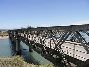 At Mossel Bay it divides to the east again, passing through all the towns between there and George. Near Nature's Valley east of Plettenberg Bay it once again splits off, traversing the various Tsitsikamma gorges such as the Grootrivier Pass and the Bloukrans Pass (which is currently closed; was closed in 2007 due to flood damage[3]) and then rejoining the N2 east of the Bloukrans Bridge. Farther east, in the Eastern Cape, it passes through the towns of Humansdorp and Jeffreys Bay, becoming the Van Stadens Pass and crossing the Gamtoos River and the Van Stadens River on its way to Gqeberha (previously Port Elizabeth), where it passes through the city centre before turning north and merging with the N2 at Coega.