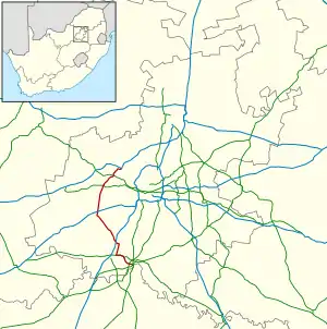 The R28 is a provincial route in Gauteng, South Africa that connects Krugersdorp with Vereeniging via Randfontein. The R28 used to connect with Pretoria, but that section of the road is now part of the N14. [1]
