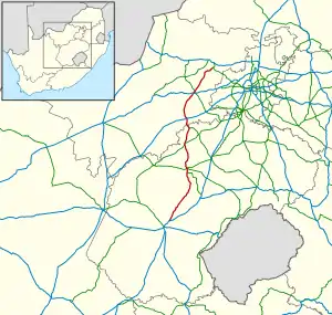 - "RDDA SOUTH AFRICAN NUMBERED ROUTE DESCRIPTION AND DESTINATION ANALYSIS". NATIONAL DEPARTMENT OF TRANSPORT. May 2012. Retrieved 25 March 2021.