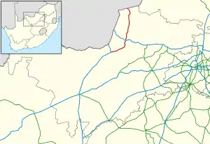 The R49 (also sometimes known as the R47) is a provincial route in North West, South Africa that connects Mahikeng with the Botswana border at Kopfontein near Gaborone, via Zeerust.[1] [2]