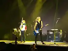 Louder was released on September 24, 2013, and climbed its way to number 2 on the iTunes charts, being classified as a "chart-topper" on the iTunes End of the Year Album list.[29] On December 25, 2013, the third single from Louder was released, titled "(I Can't) Forget About You" and, shortly after, the official video was released on the band's website. The band had songwriting credits on 6 of the 11 songs on Louder.[30] The album includes all four songs from the Loud EP.[18] In March 2013, R5 embarked on a 50-date North American tour,[18] and later that year they toured in Australia.[31] On February 5, 2014, the band embarked on the first leg of its first world tour starting in Warsaw, Poland. They toured numerous countries in Europe including: Norway, Sweden, Denmark, Germany, Netherlands, Belgium, Italy, Spain, France, the United Kingdom, the Republic of Ireland and Israel. The band also performed at the annual White House Easter Egg Roll and at the Radio Disney Music Awards.[32][33] On April 24, 2014, the band appeared on Ryan Seacrest's popular KIIS-FM radio show, On Air with Ryan Seacrest, where it was announced that they would be the opening act at the Wango Tango Music Festival.[34] The band released "One Last Dance" as fourth and final single from Louder on May 30, 2014.[35] On June 9, 2014, they released the music video for "Rock That Rock", a song written for Candymania's Ring Pop, featuring fan content.