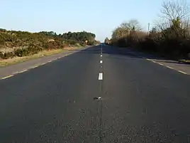 The N8 was improved at various times during the 1970s through to the early years of the 21st century. One of the first improvements entailed a realignment of the road so that it bypassed the village of Glanmire for 6 km to the east. This dual carriageway bypass, referred to in official documentation as the "Glanmire Bypass",[10] opened in April 1992 after a construction period of almost 7 years. When this happened, the former T6/N8 through Glanmire was renumbered, for the first time, as the "R639". The next major incident in the modern history of the R639 occurred in 1991, when a new 4 km single-carriageway bypass to the south-west of Cahir in County Tipperary opened to traffic. This bypass became a part of the N8 for the next 18 years. With the completion of the M8 motorway through South Tipperary in July 2008 however, the 1991 N8 Cahir Bypass was renumbered as part of the N24 – while simultaneously becoming the R639. (The original route of the N8 through Cahir town was redesignated a regional road in 1991, and made a part of the R670.) Other improvement projects carried out on the road during the 1970s, 80s and 90s involved periodic widening and resurfacing. In spring 2001, attention was turned to Watergrasshill in County Cork. For many years regarded as a serious bottleneck on the N8, a wide median 7 km dual carriageway bypass was constructed and opened to traffic in September 2003 as the N8, with the former road through Watergrasshill becoming the R639.[11][12] In 2004 the N8 through Cashel in County Tipperary was realigned with a narrow-median dual carriageway bypass to the east of that town. Again, the former N8 through Cashel was redesignated a regional road, and renumbered the R639. In October 2007 the section of N8 between Cashel and Cahir (the same road mapped by Herman Moll in 1714) was bypassed by an early-opening segment of the M8 motorway, and became the most recent addition to the R639 route. This, in turn, was followed in July 2008 by the section between Cahir and Kilbehenny; on 8 December 2008 by the length of road from Cashel to 2 km south of Cullahill in County Laois; on 25 May 2009, by the section between Mitchelstown and Fermoy; and on 28 May 2010 by the length between Durrow and Cullahill.