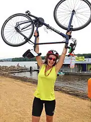 Ben Davidson, former professional football star player mainly with the Oakland Raiders, rode on RAGBRAI for several years, beginning in 1987.[71] Lance Armstrong rode the Wednesday and Thursday stages in 2006, speaking to a large throng of the riders in Newton. He then completed most of the 2007 ride before leaving a couple of days early to support Team Discovery's Alberto Contador and his Tour de France victory.[20] In 2008, Armstrong also made an appearance on the Ames, Iowa, leg of the trip. In 2011, 2013, 2014, 2017, and 2018, he again participated.[72][73][74] Ottumwa-born actor/comedian Tom Arnold has ridden a few RAGBRAIs, including XXIV in 1996.[75][76] Other participants have included three-time Tour de France champ Greg LeMond, columnist Dave Barry, NASCAR drivers Matt Kenseth and Jimmie Johnson, Motocross champion Ryan Dungey, 2004 Democratic presidential candidate Howard Dean and former Secretary of the Interior Bruce Babbitt.[77][78] Colorado governor and Democratic Presidential candidate John Hickenlooper rode in the 2019 ride. Hickenlooper, his spouse and his crew joined Team Skunk in Indionola where he provided a keg of his signature beer while using the shower of the host home.