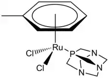 In a typical synthesis, [Ru (η6-p-cymene)Cl2] is reacted with 2 equivalents of PTA for 24 hours under reflux in methanol to yield to [Ru(η6-p-cymene)Cl2(pta)].[4]