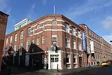 The RBSA was established as the Birmingham Society of Artists in 1821, though it can trace its origins back further to the life drawing academy opened by Samuel Lines, Moses Haughton, Vincent Barber and Charles Barber in Peck Lane (now the site of New Street Station) in 1809.[3] From this group was founded the Birmingham Academy of Arts in 1814, whose first exhibition was held that year.[4] A gallery and set of offices for the Birmingham Society of Arts was built behind a fine neo-classical portico in New Street by architect Thomas Rickman in 1829. In 1868 the RBSA received its royal charter and adopted its current name.