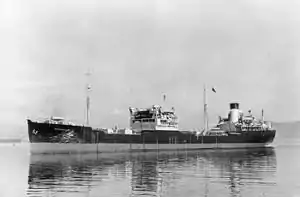 In April 1942 she was assigned to the British Eastern Fleet at Ceylon. She took part in Operation Stab and spent the next three years fuelling and escorting convoys across the Indian Ocean. On 14 April 1944 she sustained minor damage from the explosion of the ammunition ship Fort Stikine, and then in August was accidentally torpedoed by the submarine HMS Severn, rupturing two tanks and killing one.[1]