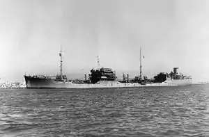 Cedardale returned to the Indian Ocean in early 1944, with service at Diego Suarez, Colombo and Trincomalee. In March 1945 she was moved to the Pacific Ocean to support allied operations there, assigned to the British Pacific Fleet. Deployed off Leyte Gulf, she was part of Task Force 112 in Operation Iceberg, the British Fleet Train's contribution to the allied assault on Okinawa.[2] The next few months were spent in these waters, often based out of Manus, Admiralty Islands, refuelling British and Australian vessels. After the surrender of Japan she sailed to Singapore, via Shanghai and Subic Bay, remaining there until December 1945, when she returned to the UK.[2]
