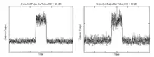 As examples, thumbnails show simulated examples of a detected pulse, in noise, where S:N = 18 dB and 15 dB. As can be seen, if the S:N falls to 15 dB or lower, it becomes difficult to set a threshold level for pulse detection, that is clear of the noise floor, and yet does not result in early termination.