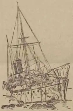 ![]() A sketch depicting the wreck of the RIMS Warren Hastings, published by the Dundee Courier on 24 March 1897.[1] | |