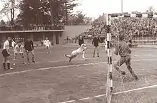 The first handball team in Maribor was formed in 1925, when the women's selection of the 1. SSK MB played their first Czech handball match at the Ljudski vrt area.[1] The first men's handball team, named Polet, was formed in 1949.[1][3] They renamed as Branik in 1951, when they participated in the Yugoslav First League qualifiers.[1] In 1954, Branik won their first Slovenian Republic League title, and were promoted to the Yugoslav First League.[1] Between 1955 and 1968, Branik did not achieve any major success and were even relegated to the local Styrian League in 1966, but returned to the top Slovenian division two years later.[1] They were relegated again in 1972, but once again returned in 1979 after spending a few years in the local regional leagues.[1] In 1977, the team merged with Kovinar Tezno to form Maribor.[1] The team was struggling in the next decade and did not achieve any major results. After Slovenia's independence in 1991, the team was reformed with a help from some former handball players, including Marko Šibila, and reached the Third National Handball League (3. DRL).[1]
