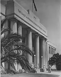 The Ethel Margaret McPherson Wing of the building was constructed between 1949 and 1950.[60] The wing, which fronts Franklin Street – next to the gatehouse of Building 11, is sympathetic in design to the original building. It was designed by the state public works department under chief architect Percy Everett.[60] It was named after the wife of McPherson's son William Jr.[63] It was opened by Mary Herring, the wife of the state Lieutenant Governor.[64]