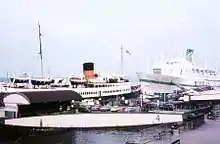 Her last winter crossing for 1967 departed from Liverpool on 24 November 1967 to Quebec from where she made a coastal cruise to New York on 2 December from where she provided seven winter cruises, the last being completed on 23 March 1968. During one of them she ran aground at San Juan, Puerto Rico on 8 February 1968, but was pulled free with no damage. On 4 May in that same year she struck a whale which became impaled on her bow. It was dislodged by going full astern.[2] In 1968 she made 24 transatlantic sailings followed by 16 cruises with the season being extended by her sailing from New York on 3 June 1969 direct to Liverpool, from where she made three summer cruises: 14 days to the Scandinavian capitals and the North Cape starting on 2 July, a three-day mini cruise on 1 August, and a 15-day Mediterranean trip on 19 September, interspersed with the occasional transatlantic service.[1]