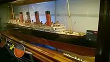 A large builder's model, showing Mauretania in her white cruising paint scheme, is displayed in the Maritime Museum of the Atlantic's Cunard exhibit in Halifax, Nova Scotia. Originally a model of Lusitania, it was converted to represent Mauretania after Lusitania was torpedoed.[53]