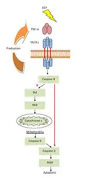 ECP triggers apoptosis by caspase-8 activation through mitochondria-independent pathway.[14] Increases in chromatin condensation, sub-G1 population, PARP cleavage, and DNA fragmentation indicate that ECP induces apoptosis in human bronchial epithelial (BEAS-2B) cells.[14]