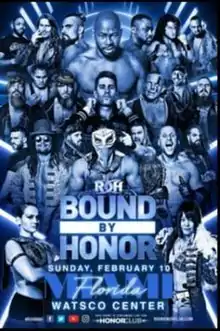 Bound By Honor (2019)[1] was a two night, two city professional wrestling event produced by Ring of Honor (ROH), that took place on February 9, 2019 at RP Funding Arena in Lakeland, Florida (tapings for ROH's flagship program Ring of Honor Wrestling) and on February 10, 2019 at the Watsco Center in Coral Gables, Florida (live event).