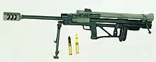 The RT-20 is a Croatian bullpup anti-materiel precision rifle developed by Metallic in Rijeka in the mid-1990s and marketed by RH-Alan.[2] It was developed to shoot the thermal sights on Serbian M-84 and T-72 tanks. The name itself is actually an acronym of the Croatian word Ručni Top 20, or "Hand Cannon 20mm". Operating with a bolt action, it houses a single 20mm round and must be reloaded after each shot. Given its large caliber, it is one of the most powerful anti-materiel rifles currently in use by any country and is comparable to the South African Denel NTW-20 and the Indian Vidhwansak, with the difference being that the RT-20 is recoilless.
