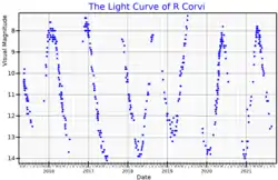 - VSX (4 January 2010). "R Corvi". AAVSO Website. American Association of Variable Star Observers. Retrieved 24 May 2014.