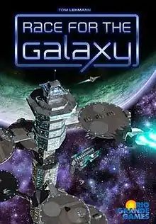 Race for the Galaxy (abbreviated "RftG" or simply "Race") is a card game designed by Thomas Lehmann. It was released in 2007 by Rio Grande Games. Its theme is to build galactic civilizations via game cards that represent worlds or technical and social developments. It accommodates two to four players by default although expansions allow for up to six players, as well as solo play. The game uses iconography in place of language in some places, with complex powers also having a text description. While appreciated by experienced players for being concise, some new players find the icons difficult to learn and to decipher.[1]