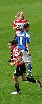 She left Leicester at the end of the 2007–08 season to join Doncaster Rovers Belles.[3] She was the FA Premier League player of the month for October 2008,[3] and was a member of the Doncaster side that lost to Arsenal Ladies in the 2009 FA Women's Premier League Cup final.[7] She ended her first season with Doncaster as the club's Player of the Year and the Players' Player of the Year.[3]