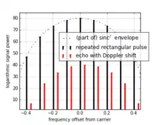 This is an issue only with a particular type of system; the pulse-Doppler radar, which uses the Doppler effect to resolve velocity from the apparent change in frequency caused by targets that have net radial velocities compared to the radar device. Examination of the spectrum generated by a pulsed transmitter, shown above, reveals that each of the sidebands, (both coarse and fine), will be subject to the Doppler effect, another good reason to limit bandwidth and spectral complexity by pulse profiling.