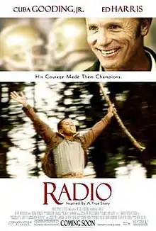 Radio is a 2003 American semi-biographical sports drama film directed by Mike Tollin, and inspired by the 1996 Sports Illustrated article "Someone to Lean On" by Gary Smith.[1] The article and the movie are based on the true story of T. L. Hanna High School football coach Harold Jones (Ed Harris) and a young man with an intellectual disability, James Robert "Radio" Kennedy (Cuba Gooding Jr.). The film co-stars Debra Winger and Alfre Woodard. It was filmed primarily in Walterboro, South Carolina because its buildings and downtown core still fit the look of the era the film was trying to depict.